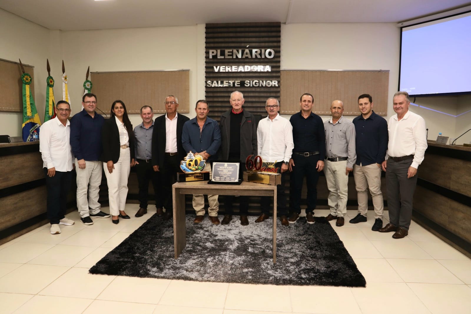 Encerrando o ato, os poderes executivo e legislativo de forma conjunta entregaram um mimo comemorativo pelos 60 anos da Creluz, além da placa representando a moção de aplauso destinada pela Câmara Municipal de Vereadores.